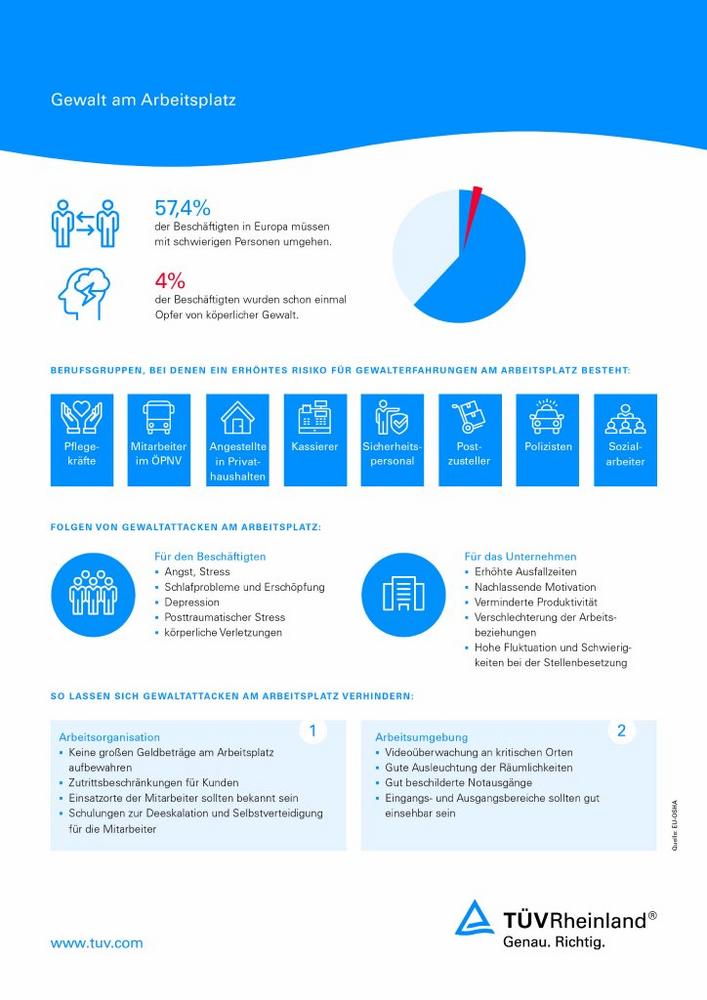 Die Gefährdungsbeurteilung des Arbeitsplatzes hilft, Schutzmaßnahmen wie Beratungstheken, zusätzliche Fluchtwege, Zugangskontrollen oder auch die Vermeidung von Einzelarbeitsplätzen festzulegen. „Optimalerweise ergänzen sich technische und psychologische Präventionsmaßnahmen. Das kommt nicht nur der Sicherheit der Mitarbeiter, sondern auch dem Unternehmen zugute. Denn Gewalt am Arbeitsplatz schädigt meist alle, die den Vorfall miterlebt haben. Fühlen sich die Betroffenen alleingelassen, kann das zu verminderter Leistungsfähigkeit führen. Eine gute Fürsorge durch den Arbeitgeber hingegen stärkt die Motivation der Mitarbeiter und die Loyalität gegenüber dem Arbeitgeber“ so Schwan.