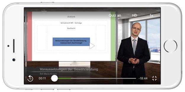 Die App (Android und iOS) bietet zudem die Möglichkeit Videos und Testfragen teilweise oder vollständig herunterzuladen und so auch offline verfügbar zu machen. Dank späterer Synchronisierung im Online-Modus geht der Lernfortschritt nicht verloren. Zusätzlich können die juristischen Mitarbeiter ihr erlerntes Wissen mit interaktiven Quizfragen und Fallbeispielen regelmäßig überprüfen.