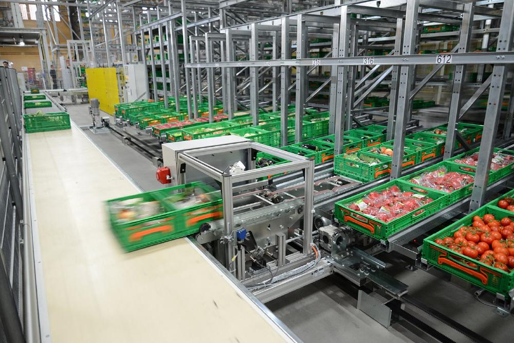 Die Einzelstückkommissionierung (Piece-Picking) erfolgt in einer Pickgasse mit automatisiertem Nachschub. Hierbei arbeiten mehrere Kommissionierer in einem Gang – geführt durch ein Pick-Guiding-System, welches höchste Kommissionierqualität sicherstellt. Laufwege reduzieren sich signifikant. Alle Picker arbeiten am selben Filialauftrag und kommissionieren Obst und Gemüse aus Behälter und Kartons direkt in die Auftragsbehälter. Jeder Kundenauftrag wird in einer Gasse komplett fertigkommissioniert. Die Auftragszuordnung des nächsten zu kommissionierenden Behälters erfolgt rechnergesteuert, hierbei werden die Kommissionierleistungen der einzelnen Picker berücksichtigt.
