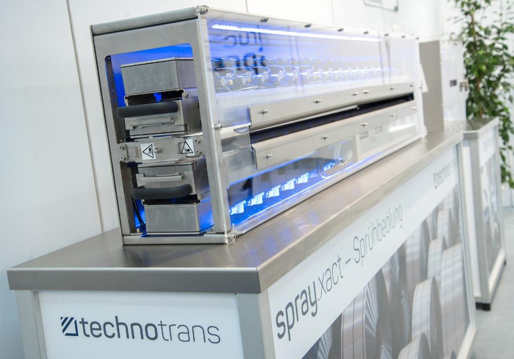 technotrans zeigt neben dieser Neuheit weitere Varianten seiner Sprühbeölungssysteme auf der Blechexpo: Hierzu gehört beispielsweise die Lösung spray.xact easy für einfache Anwendungen mit bis zu vier Sprühdüsen und die spray.xact c mit 40 Düsen und mehr für das Beölen an Umformpressen oder Feinschneidanlagen. Die Lösung spray.xact reflection wurde hingegen vor allem für den Einsatz an schmalen Bändern an Stanzautomaten entwickelt. Hierbei wird das aufzutragende Öl noch einmal verfeinert, sodass ein Ölhauch entsteht. Das Prinzip der Sprühbeölung wird an zwei Modellen direkt auf dem Messestand veranschaulicht.