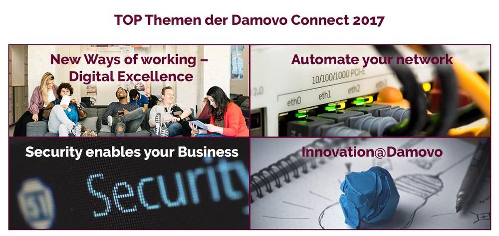 Die Teilnehmer hatten die Möglichkeit sich über technologische und strategische Entwicklungen von Avaya, Cisco, Mitel, Nice, Jabra, ASC,Teleopti, New Voice und purple view zu informieren. Das Mitwirken der Technologiepartner ist eine wichtige Säule des Damovo Connect Veranstaltungskonzeptes. Dies umfasste Speedportraits, interessante Ausstellungsstände und praxisnahe Vorträge in den Business Sessions.