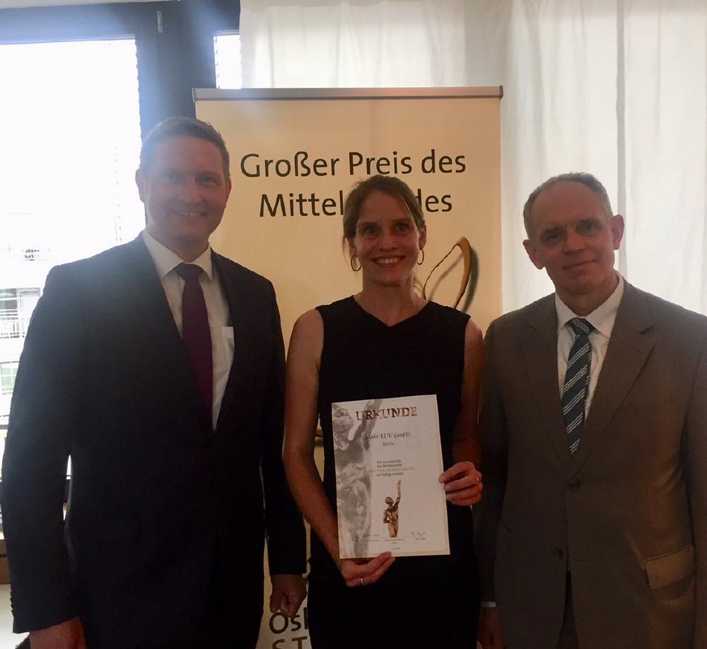 „Ich bin stolz“, sagt Verena Mahr, die die Urkunde für Mahr EDV gestern entgegengenommen hat, „dass wir auch in diesem Jahr nominiert wurden, und uns die Jury unter zahlreichen starken Mitbewerbern erneut für die Endrunde des Großen Preis des Mittelstandes ausgewählt hat. Wie all die anderen Finalisten im Raum sehe ich voller Freude und mit großer Spannung dem 08.09.2018 entgegen, wenn in Dresden die diesjährigen Gewinner bekannt gegeben werden. Ich drücke uns die Daumen!“