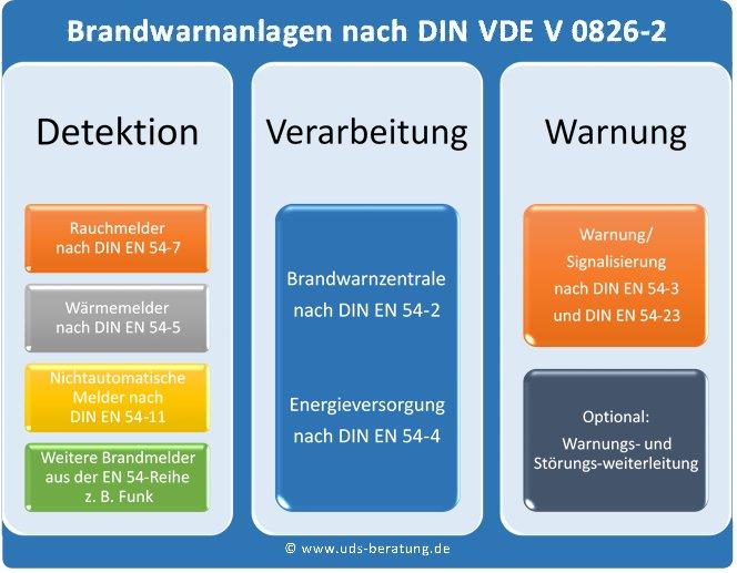 In der Norm heißt es: „ Die dauerhafte Betriebssicherheit kann nur durch die Verwendung von Produkten der Normenreihe DIN EN 54 gewährleistet werden.“ Mit entsprechenden Komponenten aufgebaute Brandwarnanlagen werden den bauaufsichtlichen Anforderungen gerecht und sind geeignet, frühzeitig und automatisch vor Bränden zu warnen. Dabei müssen die Brandwarnanlagen durch Fachfirmen geplant, installiert und instand gehalten werden. In Abhängigkeit von den räumlichen Gegebenheiten kommen Rauch- oder Wärmemelder zum Einsatz.