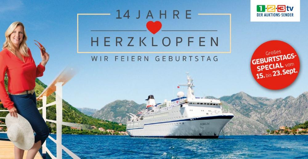 14. Geburtstag mit einem Feuerwerk aus Highlights, Jubiläumsangeboten und einem großen Gewinnspiel: Alle, die vom 15. bis 23. September bei 1-2-3.tv einkaufen, nehmen automatisch daran teil und haben die Chance, einen Einkaufsgutschein und als krönenden Hauptpreis zusätzlich eine Schlager-Kreuzfahrt inklusive aller Nebenkosten und Taschengeld zu gewinnen.