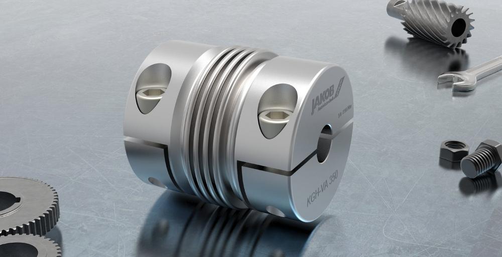 Die Reihe KGH-VA ist verschleiß- und wartungsfrei, bis 350°C einsetzbar, umfasst Wellendurchmesser von 7–85mm, Drehmomentbereiche von 10 bis 1200Nm und ist in variabler Baulänge mit 2- oder 4-welligem Balg erhältlich.