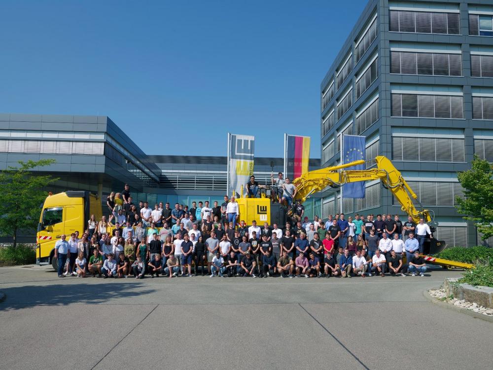 LEONHARD WEISS hält als einer der bedeutendsten Arbeitgeber der Region und als größter Ausbildungsbetrieb der Baubranche in Baden-Württemberg seit Jahren an seiner Ausbildungsoffensive fest. Und so konnte Dieter Straub, Vorsitzender der Geschäftsführung, am 31. August insgesamt 142 neue Auszubildende und Studierende im Foyer des Satteldorfer Verwaltungsgebäudes begrüßen. Gemeinsam mit Geschäftsführer Stefan Schmidt-Weiss gratulierte er den Azubis zu ihrer Entscheidung, ihren beruflichen Werdegang bei LEONHARD WEISS zu beginnen. Über alle drei Ausbildungsjahre hinweg begleitet das Familienunternehmen aktuell mehr als 300 junge Menschen bei ihrem Einstieg ins Berufsleben und bietet dabei weit mehr als im Ausbildungsrahmenplan vorgeschrieben ist, zum Beispiel eine eigene Lehrwerkstatt, zahlreiche Ausbildungsaktivitäten oder spezielle Schulungen der LEONHARD WEISS-Akademie.