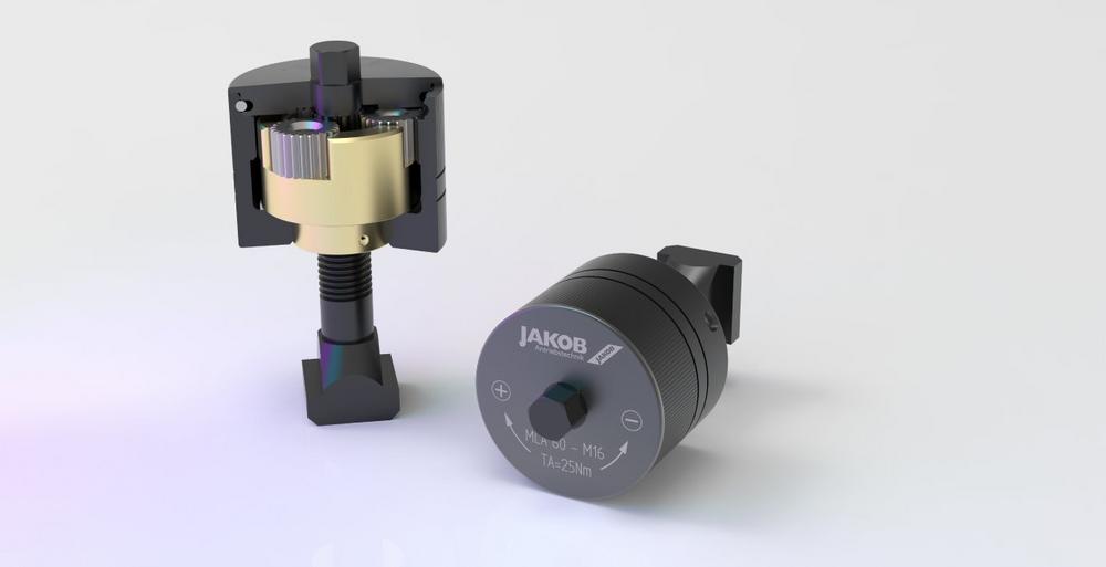Mit der Kraftspannmutter MCA von JAKOB Antriebstechnik steht dem Anwender ein lange bewährtes, weit verbreitetes und wirtschaftliches Spannelement zur Verfügung. Ohne zusätzlichen Installationsaufwand kann diese Spanntechnologie höchste Spannkräfte und maximale Betriebssicherheit gewährleisten – und ist dabei ganz einfach manuell bedienbar. Hierfür wird lediglich ein Schraubenschlüssel SW 17 benötigt. Empfohlen wird dennoch einen Drehmomentschlüssel zu nutzen, um exakte, reproduzierbare Spannkräfte zu gewährleisten. Das besondere Innenleben, eine integrierte Planetengetriebemechanik, vervielfacht das manuelle Anzugsmoment.