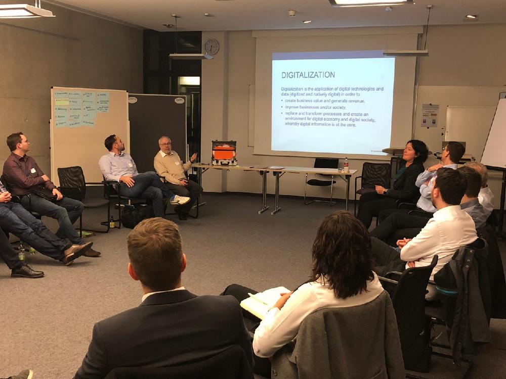 Digitalisierungsprojekte verlangen eine neue Auseinandersetzung mit den Auswirkungen auf Ökonomie und Gesellschaft, ein neues Wertebewusstsein wird gefordert. Der Workshop-Charakter der Veranstaltung sorgte für regen Austausch unter den Anwesenden und brachte viele branchenübergreifende Themen für die Runde zum Vorschein. Wie gehen die Firmen an das Thema heran, wie holen sie den Endnutzer ab und passen ihr Vorgehen an dessen Bedürfnisse an? Außerdem beschäftigen die Teilnehmenden die Themen Datenschutz, Sicherheit und Digitale Zwillinge.
