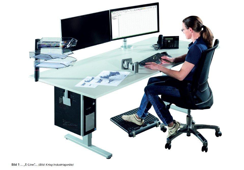Beim Sitzen, insbesondere mit Rundrücken, werden Wirbelsäule und Bandscheiben doppelt so stark belastet wie beim aufrechten Stehen. Der Hersteller KRIEG bietet daher vermehrt höhenverstellbare Arbeitstische an. So können die Bedingungen für jeden Mitarbeiter nach Körpergröße und Greifraum eingestellt und sogar gespeichert werden – falls mehrere Personen den Schreibtisch nutzen. Ein Belastungswechsel zwischen Sitzen und Stehen wirkt positiv auf Muskulatur und Gelenke – und fördert nachhaltig das entspannte Arbeiten. Damit das unkompliziert und mit geringem Umstellungsaufwand passiert und somit von den Mitarbeitern auch wahrgenommen wird, ist ein Motorantrieb für eine komfortable, stufenlose Höheneinstellung sinnvoll.