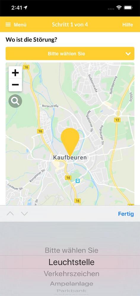 Die App ist sehr einfach und intuitiv bedienbar. Es erfordert keinerlei Kenntnisse zur Bedienung der Anwendung. In weniger als einer Minute, ist ein Mangel gemeldet. Für alle Bürger, welche kein Smartphone besitzen, gibt es die webbasierte Version der Anwendung auf www.kaufbeuren.de.
