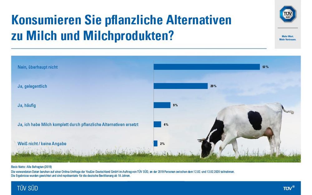TÜV SÜD-Umfrage: Kuhmilch ist weiterhin beliebt bei Verbrauchern