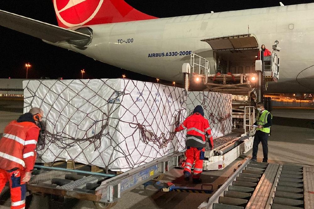 An einer extra Wochenendschicht packten die speziell geschulten Mitarbeiter die Ware im Airfreight Hub Groß-Gerau so um, dass 40 Europaletten und 40 Industriepaletten entstanden. Diese wurden wiederum in 40 sogenannte Half-PAG-Shipper verpackt. Diese großvolumige Passiv-Verpackungslösung fasst jeweils eine Euro- und eine Industriepalette und stellt eine Temperatur von 2° bis 8°C sicher.
