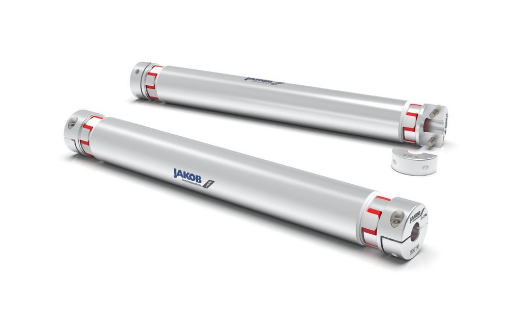 Außer den Verbindungswellen der Reihen Simple-Flex, WD, WDS, WDZ und WD-VA bietet Jakob noch eine weitere Standardbaureihe und kundenspezifische Lösung für die Überbrückung großer Achsabstände an: Die auf Elastomerkupplungen der Reihe EKH basierende Reihe EKHZ. Der Einsatzbereich der Reihe EKHZ liegt hauptsächlich in Anwendungen mit mittleren Betriebsdrehzahlen. Sie deckt einen Drehmomentbereich von 20 bis 1600 Nm ab und erlaubt maximale Drehzahlen von 3500 U/min bei der minimalen Länge von 50 cm. Sie eignet sich für Wellendurchmesser von 10 bis 100 mm. Allgemein beträgt die erreichbare maximale Länge der Reihe EKHZ drei Meter. Die Reihe EKHZ erlaubt es, Schwingungen effizient abzubauen. Der Grad der Schwingungsdämpfung lässt sich durch die Shorehärte der Ausgleichselemente anpassen. Die verwendeten Kunststoffsterne bieten zwei Vorteile: auch ohne Halbschalenausführung lassen sich die Kupplungen, da steckbar, einfach montieren. Zudem wirkt der Kunststoff thermisch und elektrisch isolierend. Aufgrund der Eigenschaften des verwendeten Materials können diese Kupplungen nur bis 90°C eingesetzt werden, wobei sich das zulässige Übertragungsdrehmoment mit zunehmender Temperatur reduziert.