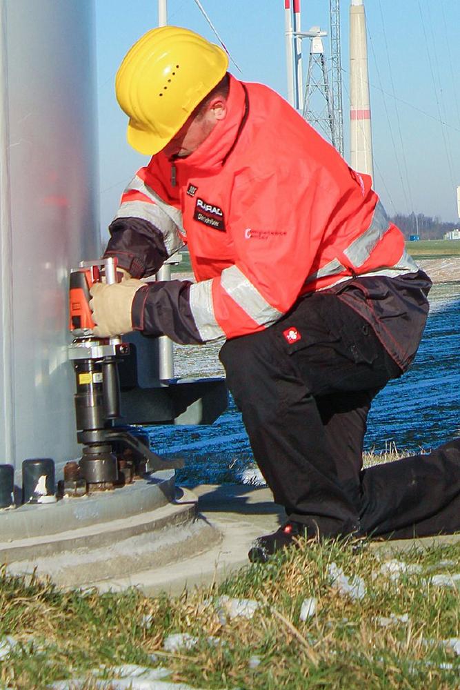 Denn der Safety Start Trigger ermöglicht die Bedienung des Schraubers über die sogenannte Zweihandbedienung. Das heißt, der Anwender muss immer beide Hände am Schrauber haben und gleichzeitig den Trigger sowie den Auslöseknopf am zusätzlich angebrachten Haltegriff betätigen, damit dieser funktioniert. Lässt der Arbeiter eine der Tasten vorzeitig los, schaltet der Schrauber automatisch ab. Natürlich ist die Handhabung mit den vorgeschriebenen Arbeitshandschuhen möglich.