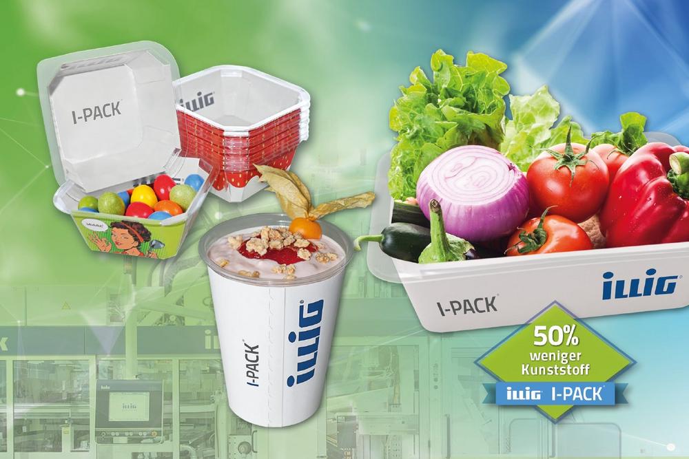 Umweltschonende Anwendungen stehen im Fokus bei Packmittelherstellern. Nachhaltige und einfach recycelbare Verpackungslösungen die alle Anforderungen an Hygiene, Produktschutz, Logistik und Convenience erfüllen, werden gefordert. ILLIG bietet mit I-PACK® (ILLIG intelligent packaging) einfach trennbare und variantenreiche Kunststoff-Karton-Kombinationen mit reduziertem Kunststoffeinsatz. Die nachhaltigen I-PACK® Schalen, Becher und Deckel werden mit viel Know-how unter anderem auf etablierten Produktionssystemen hergestellt. Die Verpackungsexperten bei ILLIG begleiten die Kunden im gesamten „Pactivity® 360“-Entwicklungsprozess von der ersten Idee bis zur Inbetriebnahme des Produktionssystems. ILLIG hat nachhaltige und recycelbare Verpackungslösungen realisiert, die sich zur Aufrechterhaltung einer Schutzatmosphäre technisch perfekt verschließen lassen. Die I-PACK® Schalen sparen wertvolle Ressourcen mit über 50% reduziertem Kunststoffanteil im PP- oder PET-Kunststoff-Inlay. Die stabilisierende Kartonmanschette ist nach dem Benutzen leicht zu trennen. Der große Siegelrand ermöglicht einen dichten Verschluss.