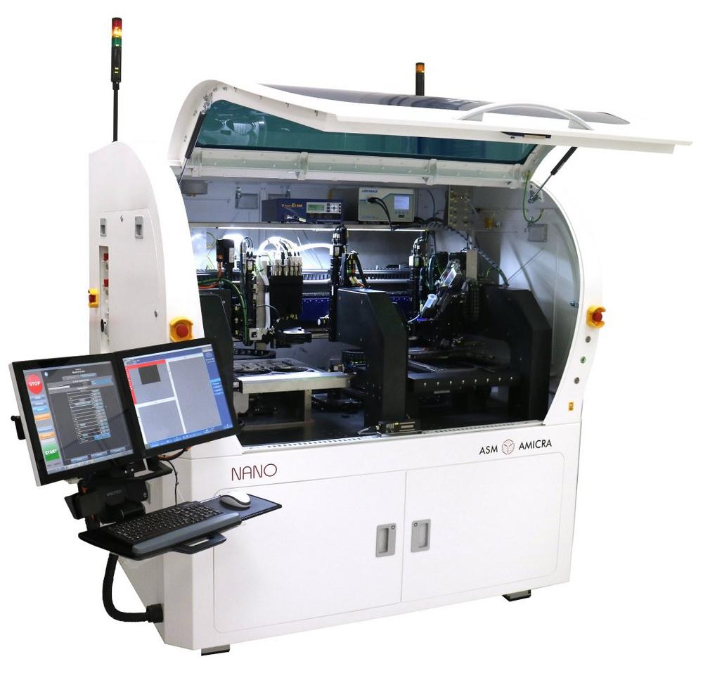 Mit einer Genauigkeit von 0,3 µm @ 3 σ gilt der AMICRA NANO als der präziseste Die-Bonder seiner Klasse. Der Die- and Flip-Chip-Bonder für anspruchsvolle Aufgaben ist aufgrund seiner herausragenden Bestückungsgenauigkeit bei gleichzeitiger Unterstützung eines eutektischen Hochgeschwindigkeits-Bondprozesses besonders geeignet für das zuverlässige Handling von ultrakleinen und sehr dünnen Chips. Als Technologieführer hat ASM AMICRA hochauflösende Bildgebungssysteme zur Unterstützung des dynamischen Ausrichtungssystems entwickelt, einen Faserlaser als primäre Wärmequelle für das eutektische Bonden implementiert und hochauflösende Bewegungssteuerungs-systeme auf einer Granitstruktur mit einem speziellen Vibrationsdämpfungssystem montiert. Kernstück des bild-verarbeitungsgesteuerten Die-Bonders AMICRA NANO sind 4x-Bildgebungssysteme in festen Positionen auf Granit montiert, während sich alle anderen Bewegungssteuerungssysteme um die Bildverarbeitungskameras herumbewegen. Dieses Konstruktions-konzept ist bis heute maßgeblich bei der Entwicklung hochpräziser Bestückungssysteme.