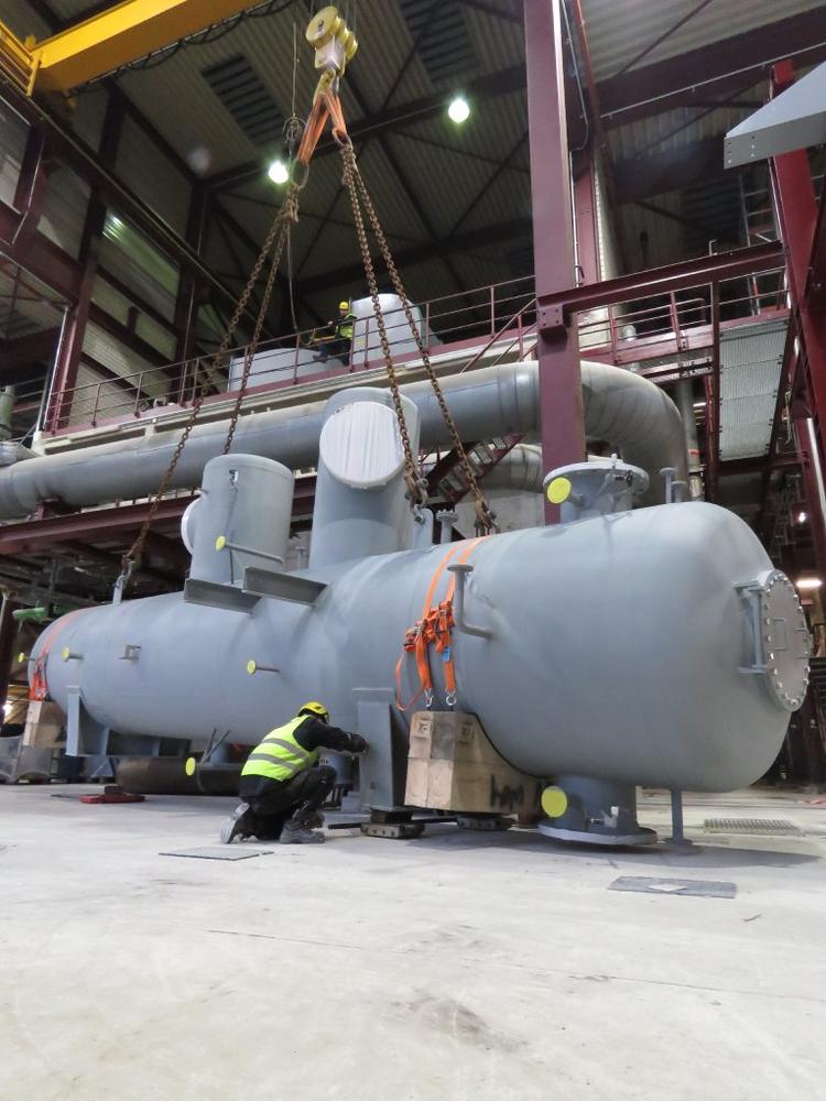 René Tilsen, Bereichsleiter Erzeugung bei den Stadtwerken Schwerin, freut sich über diesen Meilenstein: „Nach einer umfangreichen Planungsphase und einem Jahr der Demontage können wir endlich mit der Installation der neuen Technik in unserem Heizkraftwerk loslegen. Mit einer Länge von 10 und einem Durchmesser von 2 Metern ist der Hochdruck-Heizkondensator das erste von einigen großen Bauteilen für unser grunderneuertes Kraftwerk. Insgesamt werden wir zwei Heizkondensatoren installieren, um die Stromkennzahl, also das Verhältnis von Stromleistung und Wärmeleistung, für unser Kraftwerk zu optimieren. Parallel bereiten wir auch schon den Stahlbau für unsere zwei neuen Gasturbinen vor, die derzeit noch auf dem Seeweg von Long Beach in den USA nach Zeebrugge in Belgien sind.“