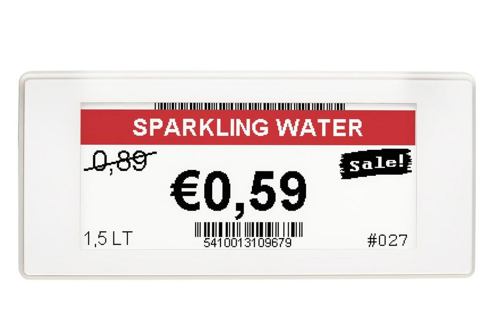 Für größere, hochauflösende Hinweise oder grafische Werbung eignen sich sowohl das ESL-Label EE-750R mit seinem 7,5" großen E-Paper Display, als auch das 10" große ET-1002 TFT-Display. Hiermit können beispielsweise Preise oder spezielle Tages- und Wochenangebote auf innovative, leicht lesbare und dennoch sehr effiziente Weise kommuniziert werden.