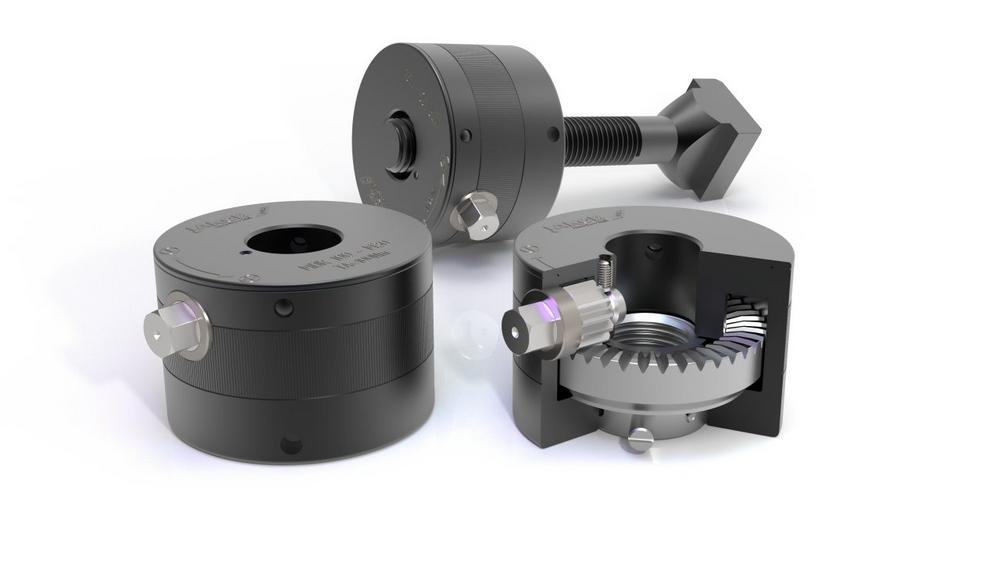 Wesentliches Konstruktionsmerkmal der MDR-Spannmutter ist ein spezielles Kronenradgetriebe mit rechtwinkliger Umlenkung der Rotation zur Vervielfältigung des Anzugsmomentes. Proportional zum Anzugsmoment wird die Spannkraft sicher und kontrolliert aufgebaut. Hierdurch werden mit einfachster manueller Bedienung hohe Spannkräfte bei maximaler Betriebssicherheit gewährleistet. Bei der Gewindegröße M30 wird zum Beispiel der üblicherweise benötigte schwere SW46-Schlüssel durch den SW14-Bediensechskant ersetzt und erlaubt somit ein deutlich komfortableres Arbeiten.