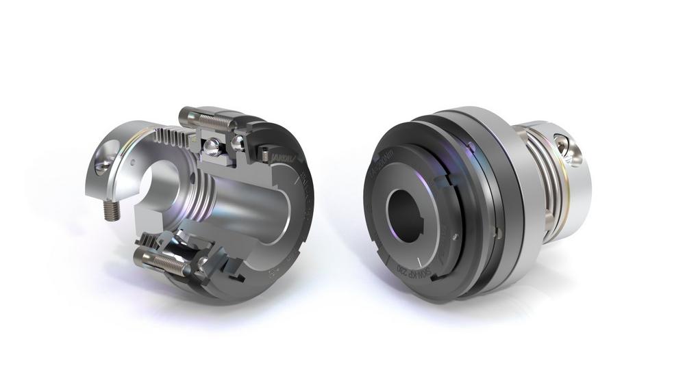 Die flexible, spielfreie Sicherheitskupplung der Baureihe SKW-KP ist eine Kombination aus Sicherheitskupplung und Servo-Metallbalgkupplungsanbau für direkte Antriebe. Der Sicherheitskupplungsteil kommt mit kostengünstiger Passfedernut-Verbindung und integriertem Rillenkugellager für hohe Lagerkräfte, der Metallbalgkupplungsanbau mit 4-welligem Balg und montagefreundlicher EASY-Klemmnabe. Die Kombination gewährleistet sowohl den Überlast- und Kollisionsschutz als auch den Ausgleich von Fehlausrichtungen. Erhältlich ist sie für Drehmomentbereiche von 2 – 9000 und Wellendurchmesser von 6 – 140 mm im Metallbalgkupplungsanbau und 6 – 110 mm im Sicherheitskupplungsteil.