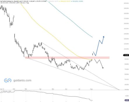 Rückblick Wie im Artikel ( https://jrconline.com/paypal-wie-steht-es-um-den-zahlungsanbieter/ ) am 11.07.22 beschrieben, hat der Kurs der Paypal-Aktie zuletzt ein bullishes Pattern gebildet, welches schon einen Kursanstieg signalisiert hat. Tatsächlich ist der Kurs wenige Tage später nach oben ausgebrochen und hat eine starke Aufwärtsbewegung hingelegt. Dabei hat der Kurs zunächst den Moving […]