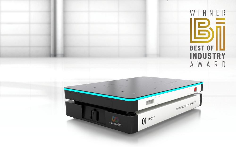 Die als Automated Guided Vehicle (AGV) oder Autonomous Mobile Robot (AMR) einsetzbare Transportplattform X MOVE von ek robotics ist für eine bislang einzigartige Fähigkeit mit dem Best of Industry Award in der Kategorie Fördertechnik ausgezeichnet worden.