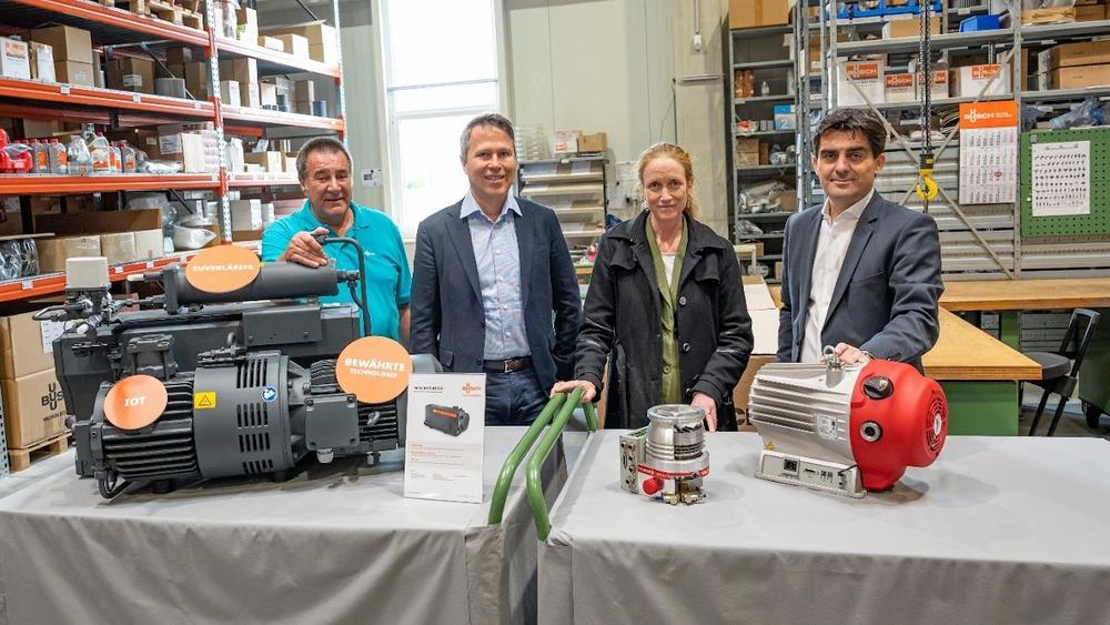 Neben Dr. Giesen und Herrn Gepp waren bei der Veranstaltung auch Kaya Busch, Co-CEO und Miteigentümer von Busch Vacuum Solutions, Daniel Sälzer, Managing Director der Pfeiffer Vacuum AG, Reinhard Schnitzler, Geschäftsführer von Pfeiffer Vacuum Austria und Karl Seiberl, zukünftiger Geschäftsführer von Pfeiffer Vacuum Austria zugegen. In seiner Ansprache wünschte Kaya Busch beiden Teams alles Gute für den Neubau und die gemeinsame Zukunft.