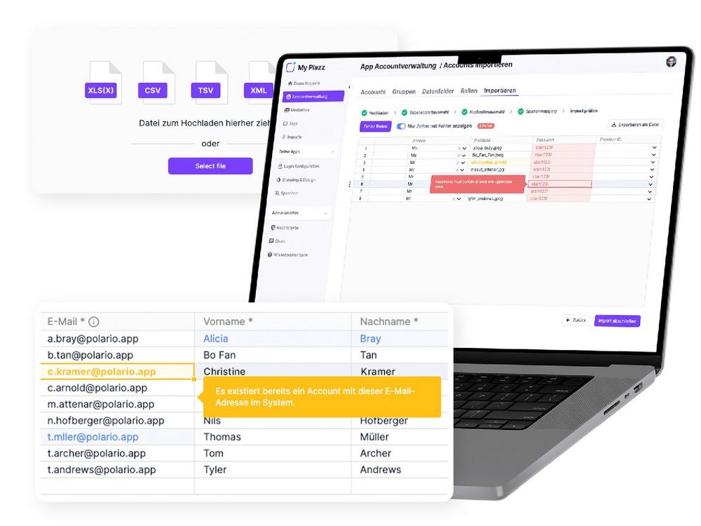 Es handelt sich um einen geführten Importprozess, mit dem Nutzer gesammelt Datensätze von Personen in Polario integrieren und aktualisieren können. Der Personen Import verfügt über eine automatische Fehlererkennung, beispielsweise beim Festlegen von Passwörtern, die nicht den Richtlinien entsprechen, Duplikaten oder für Dateinamen beim Hochladen von Bildern.