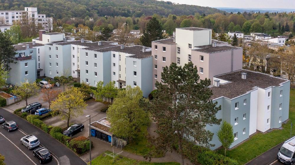 Wohnen im Grünen? Das geht auch in der Stadt. In der Theodor-Heuss-Straße im unterfränkischen Schweinfurt zum Beispiel gibt es eine Wohnanlage, die nicht nur fußläufig zu einem Waldgebiet liegt, sondern auch von Bäumen umrahmt ist. Sie schirmen die Anlage angenehm von den umlaufenden Straßen ab. Den Bewohnerinnen und Bewohnern des Wohnkomplexes bescheren sie nicht nur einen schönen Ausblick, sondern auch ein Plus an Wohnqualität.