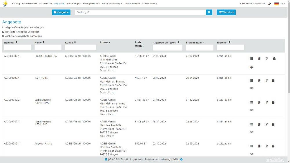Die ACBIS GmbH liefert Lösungen zur automatisierten Angebotserstellung und Auftragserfassung für Unternehmen mit komplexen und individuellen Produkten und Dienstleistungen. Die Lösungen der ACBIS GmbH umfassen Produktkonfigurator Software, CPQ Software und B2B-Shop-/B2B-Portal-Software. Die Lösungen der ACBIS können in ERP-Systeme integriert, online in Webanwendungen genutzt und offline zur Unterstützung des Vertriebes eingesetzt werden.