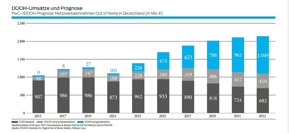 Gemessen an der vom IDOOH ermittelten Gesamtzahl der digitalen Screens in Deutschland von etwa 120.000 nimmt sich der Umfang des Segments "Roadside" noch bescheiden aus. Angesichts der enormen Reichweiten im öffentlichen Raum haben die annähernd 5.000 Screens an quasi handverlesenen, hoch frequentierten Standorten aber bereits jetzt große Relevanz. Das zeigt sich beim Werbeumsatz. Gegenüber 2022 stiegen die Bruttowerbeaufwendungen für "Plakat Digital" gemäß Nielsen Werbetrend im Jahr 2023 um 41 Prozent auf 355,6 Millionen Euro. Damit machen die digitalen Screens im Straßenraum heute schon rund 12 Prozent vom Bruttowerbeumsatz der gesamten Gattung OOH aus.