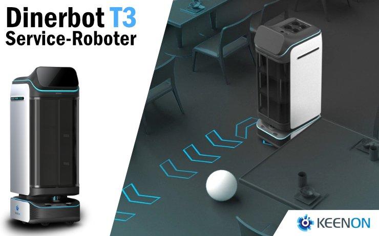 Der Dinerbot T3 ist ein moderner Serviceroboter, der eigens für die Verwendung in Kantinen, Cafés und Restaurants konzipiert wurde. Der Dinerbot T3 stellt mit seinen Schwerpunkten auf Sicherheit, Hygiene und Effizienz eine neue Lösung für die Zustellung und Rückgabe von Lebensmitteln dar.
