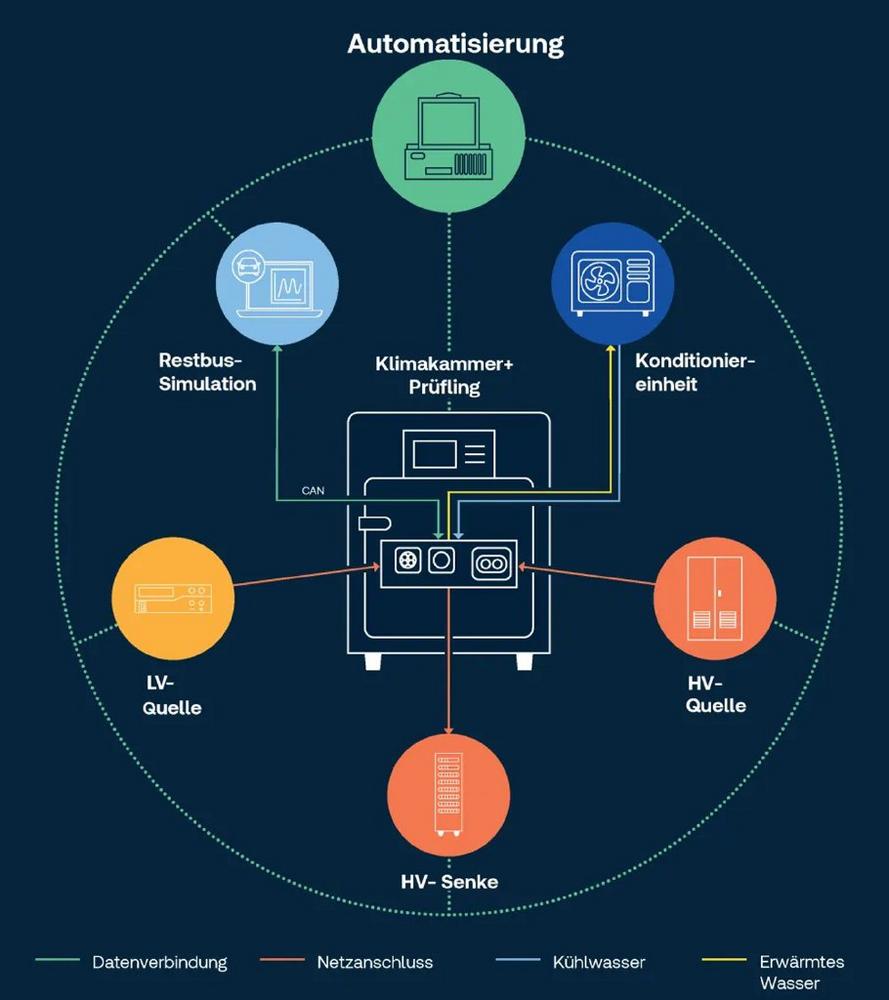 Durch den Einsatz modernster Prüfstände und Testverfahren ermöglicht TÜV SÜD eine genaue Analyse über das Verhalten der EV-Komponenten bei den extremen Umgebungsbedingungen, die über die grundlegenden Anforderungen hinausgeht. Vor allem das Verstehen des Ausfallmechanismus im Schadensfall ist für die Entwicklung von HV-Komponenten entscheidend.