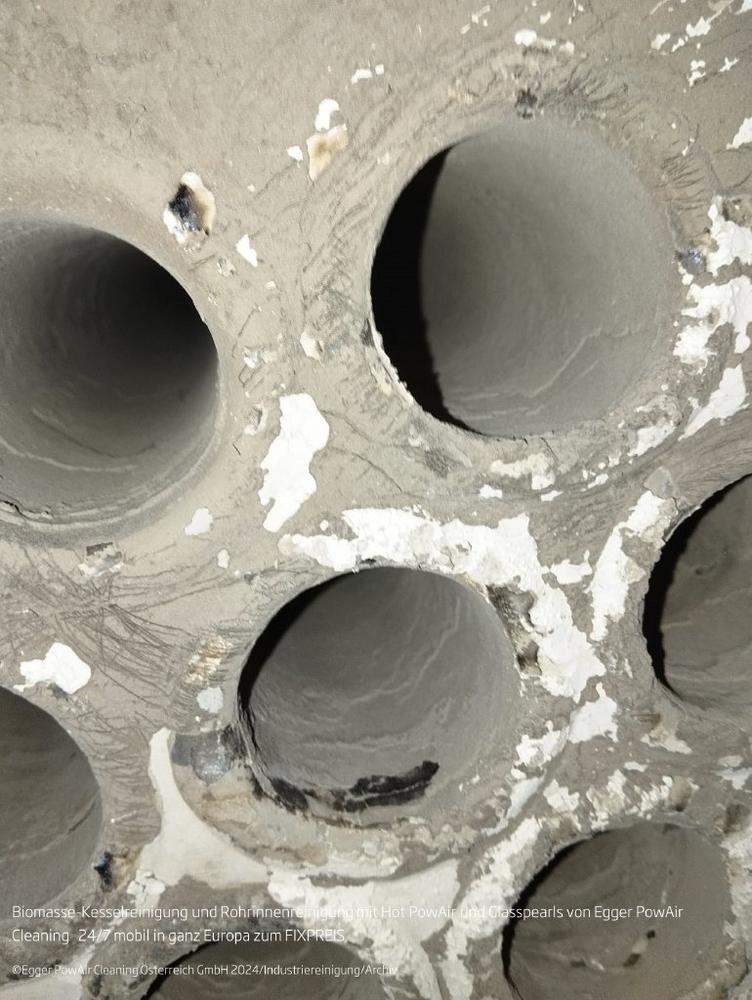 Egger PowAir Cleaning ist als mobiler Dienstleister in ganz Europa tätig und hat in den letzten zehn Jahren über 4000 erfolgreiche Projekte abgeschlossen. Besonders bei der Reinigung von Wärmetauscher-Registern in Heizkraftwerken, sowie der Rohrinnenreinigung der Wärmetauscher mit den PowAir-Glasspearls setzt die Egger PowAir Maßstäbe im Bereich der industriellen Reinigung. Die Ergebnisse sprechen für sich: glänzende, glatte Oberflächen, die das Anhaften von Ablagerungen verlangsamen und so unter anderem die Produktions- und Betriebszeit, die sogenannte Reisedauer, einer Verbrennungsanlage deutlich verlängern.