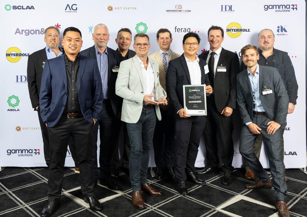 Im Namen der beiden Unternehmen nahmen Diarmuid McArdle (Coles – Head of Automation Programs) und Win Tun (WITRON – Key Account Manager für die APAC-Region) zusammen mit weiteren Kollegen aus den Projekt-Teams die Urkunde sowie eine beeindruckende Trophäe aus Bergkristall von Chefjuror Nigel Edwards entgegen.