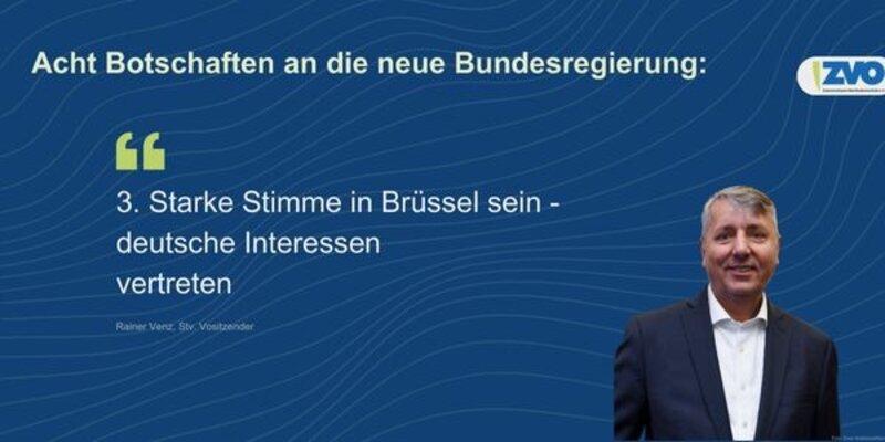 Deutschland hat sich bei entscheidenden europäischen Projekten wie beispielsweise dem Green Deal zu oft auf die Hinterbank begeben, anstatt sich aktiv für die Interessen der deutschen Unternehmen und Verbraucher einzusetzen. Der ZVO fordert die kommende Bundesregierung daher auf, seine Verhandlungsposition auf europäischer Ebene proaktiv auszufüllen und sich verstärkt für die Interessen des deutschen Mittelstands und der Industrie einzusetzen.