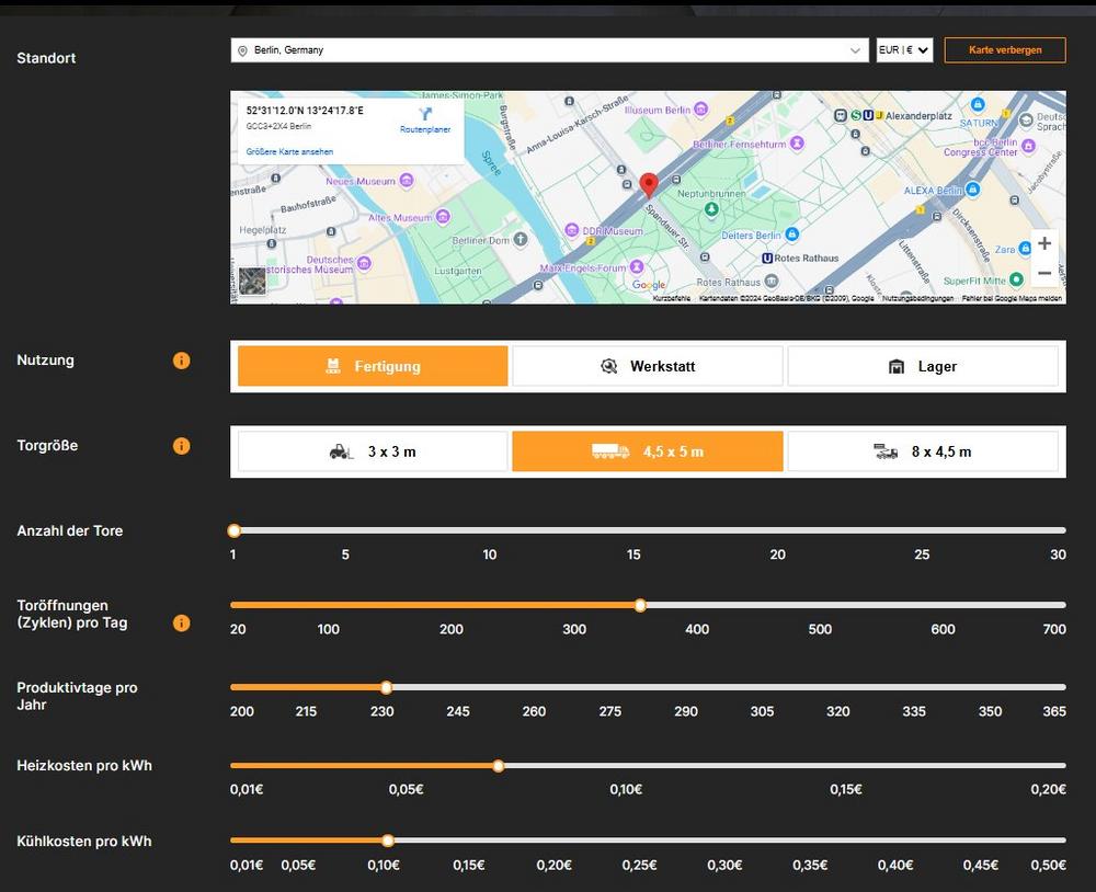 Vor der Investition in Schnelllauftore ist, wie bereits geschildert, auch der Return on Investment interessant, wobei Nutzende hier den Saver sprichwörtlich als „eierlegende Wollmilchsau“ bezeichnen. Denn auf einen Blick ist ersichtlich, welche Energiekosten durch den Einbau eines modernen Schnelllauftores eingespart werden können.