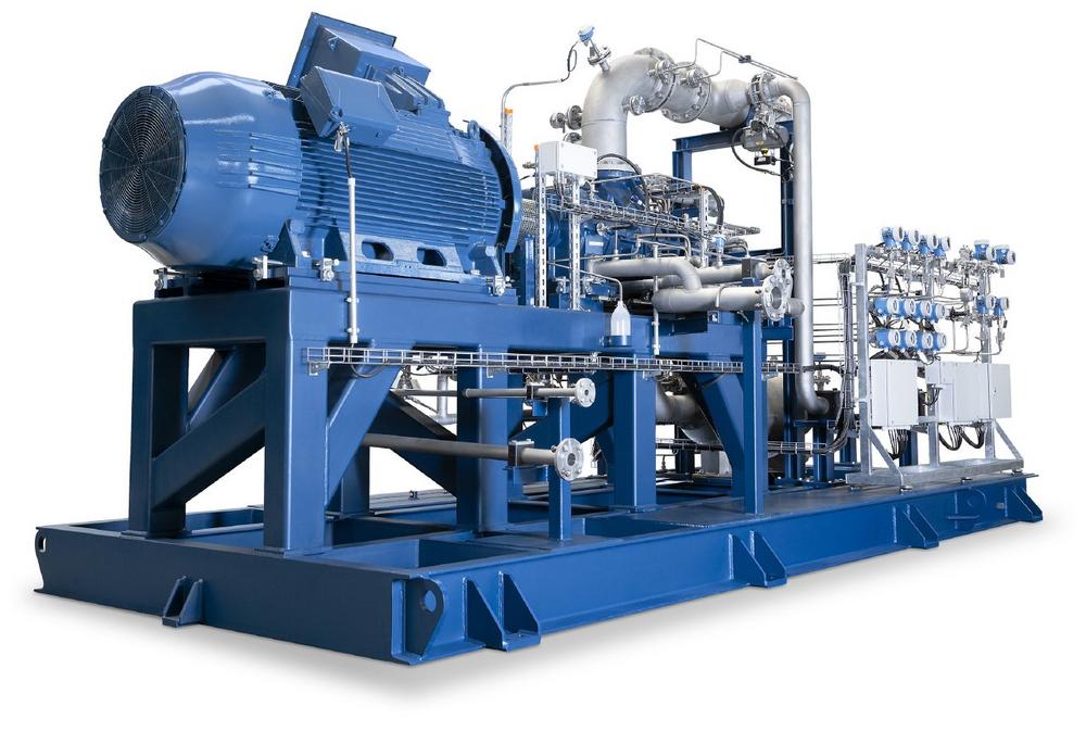 Hydrogen is establishing itself as an energy source of the future and is an important building block for the decarbonisation of industry. As a strong partner to the process industry, AERZEN has been dealing with the topic of hydrogen compression for decades and therefore has a high level of expertise in this range. The AERZEN product range includes both the oil-free series VRA, the water-flooded series VRW as well as the oil-flooded series VMY and scores highly in terms of installation space, cost-effectiveness and process reliability. The oil-free, water-flooded screw compressor VRW 536 M brings H2 volume flows of up to 6,000 m3/h to a maximal final pressure of 10 bar(a). This solution is therefore perfectly suited as a pre-compressor for reciprocating compressor systems in electrolysis projects and reduces investment costs and installation space.