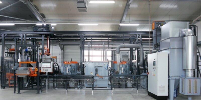 Neu in der Anlage integriert sind eine Laser-Vorbehandlung der Firma SLCR, eine Strahleinheit mit Wechseltrommel von Sinto/Agtos sowie eine energieeffiziente Lufttrocknung über Airgenex von Harter. Die Anlage ist zudem für die Plasmareinigung der Firma aixACCT vorbereitet – ein Verfahren, das bereits bei der Firma Heico erfolgreich im Einsatz ist.