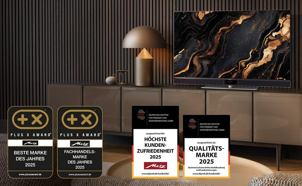 Was nur wenigen Unternehmen gelingt, hat Metz aufs Neue geschafft – das begehrte Gütesiegel „Beste Marke des Jahres“ zu erhalten. Weitere renommierte Auszeichnungen in diesem Jahr wie „Fachhandelsmarke des Jahres“, „Höchste Kundenzufriedenheit“ sowie erstmalig „Qualitätsmarke 2025“ bestätigen den Erfolgsweg des deutschen Premium-TV-Herstellers.