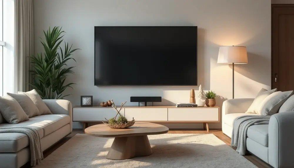 - Akustische Integration: Berücksichtigen Sie die Raumakustik bei der Platzierung des Fernsehers. Harte Oberflächen reflektieren den Schall und können die Klangqualität beeinträchtigen. Teppiche, Vorhänge oder Akustikpaneele können helfen, den Klang zu optimieren.