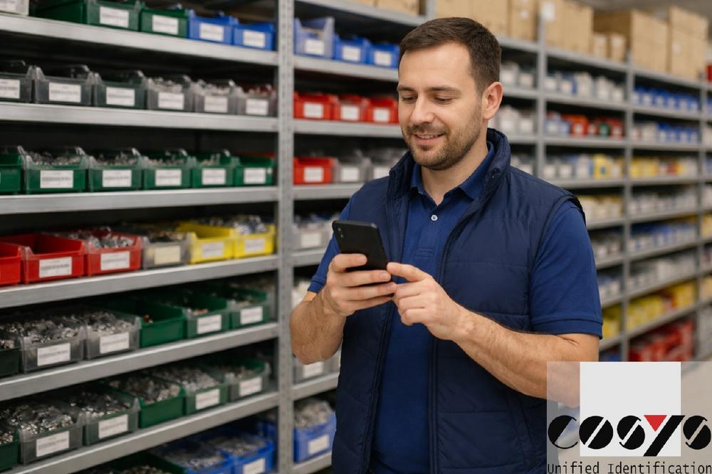Dank der mobilen Datenerfassung per Smartphone oder MDE-Gerät können Mitarbeitende C-Teile direkt am Lagerplatz buchen. Das reduziert Fehler, beschleunigt Prozesse und sorgt für eine lückenlose Dokumentation aller Materialbewegungen.