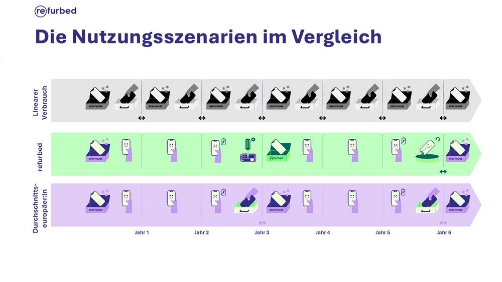 Diese und weitere Fragen beantwortet die mittlerweile dritte Studie von Fraunhofer Austria im Auftrag von refurbed: Untersucht wurden die Auswirkungen unterschiedlicher Nutzungsszenarien eines Standard-Smartphones auf die Kostenbelastung für jeden User und auf den Impact für unsere Umwelt – mit dem Ergebnis: