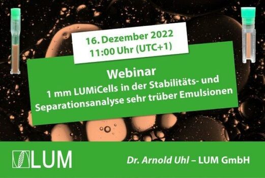Nehmen Sie am neuen LUM Live-Webinar teil, um Antworten auf die drei Schlüsselfragen der Demulgierung zu erhalten: wie quantifiziere ich schnell und einfach die Kinetik der Öl-Wasser Separation, die Menge und die Qualität des separierten Wassers aus Erdöl-Wasser-Emulsionen?Sparen Sie Energie, Arbeit & Entscheidungszeit und lassen Sie Ihre Demulgierungs-Tests entweder in […]